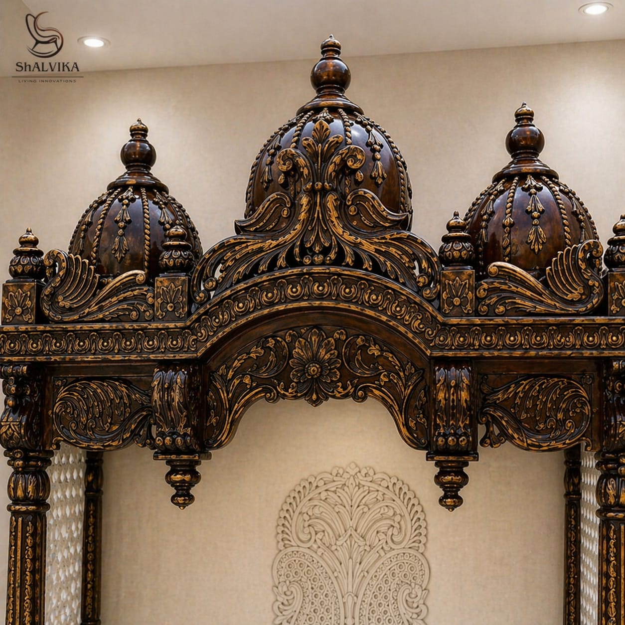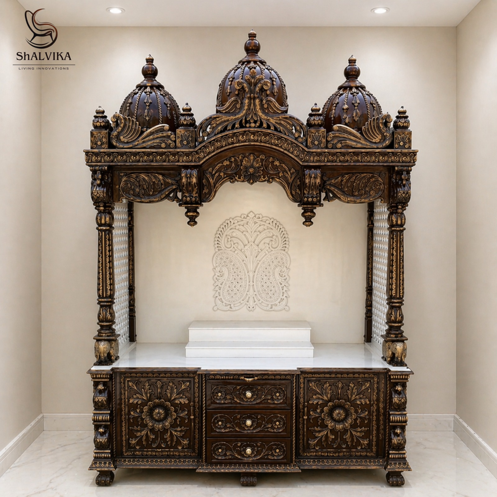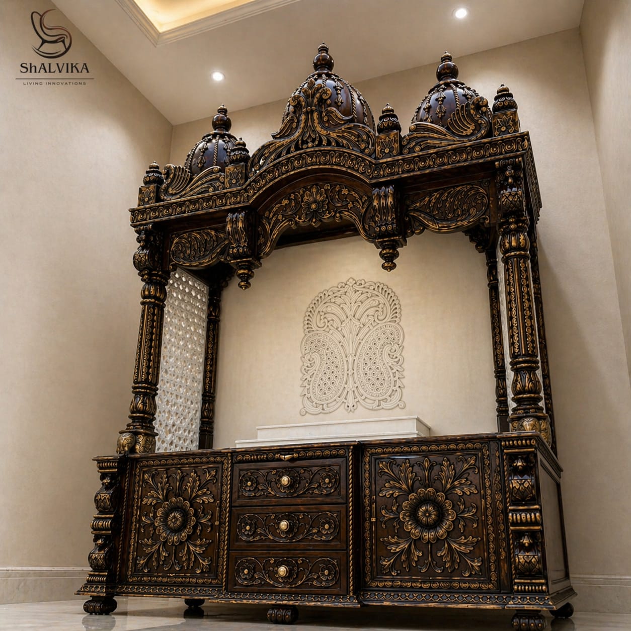 This fully carved traditional puja mandir is more than furniture—it’s a sacred space crafted with care, tradition, and timeless beauty.