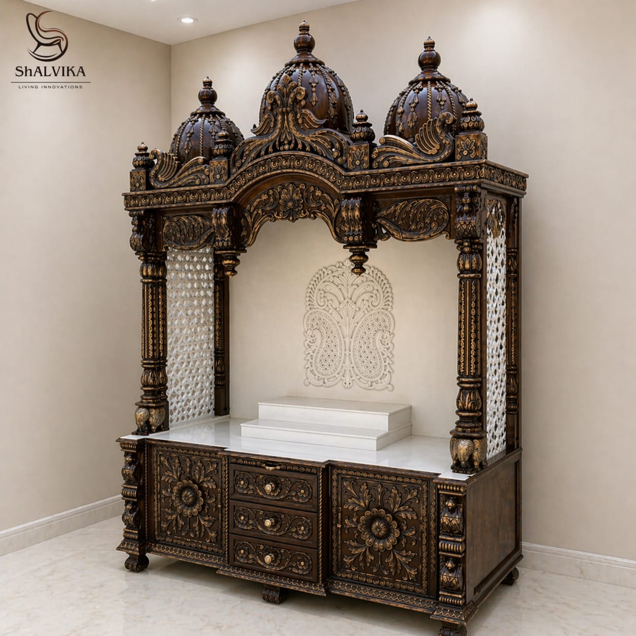 Bring home a perfect blend of devotion and elegance with a handcrafted puja mandir for home online from Shalvika Living. Designed with traditional artistry and modern usability, this teak wood temple adds a divine touch to your space while offering long-lasting quality.