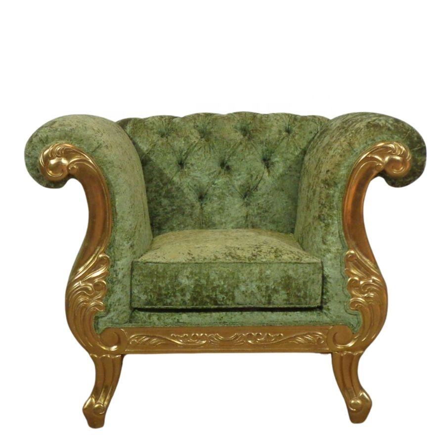 • Design: Classic Chesterfield with deep button tufting and rolled arms