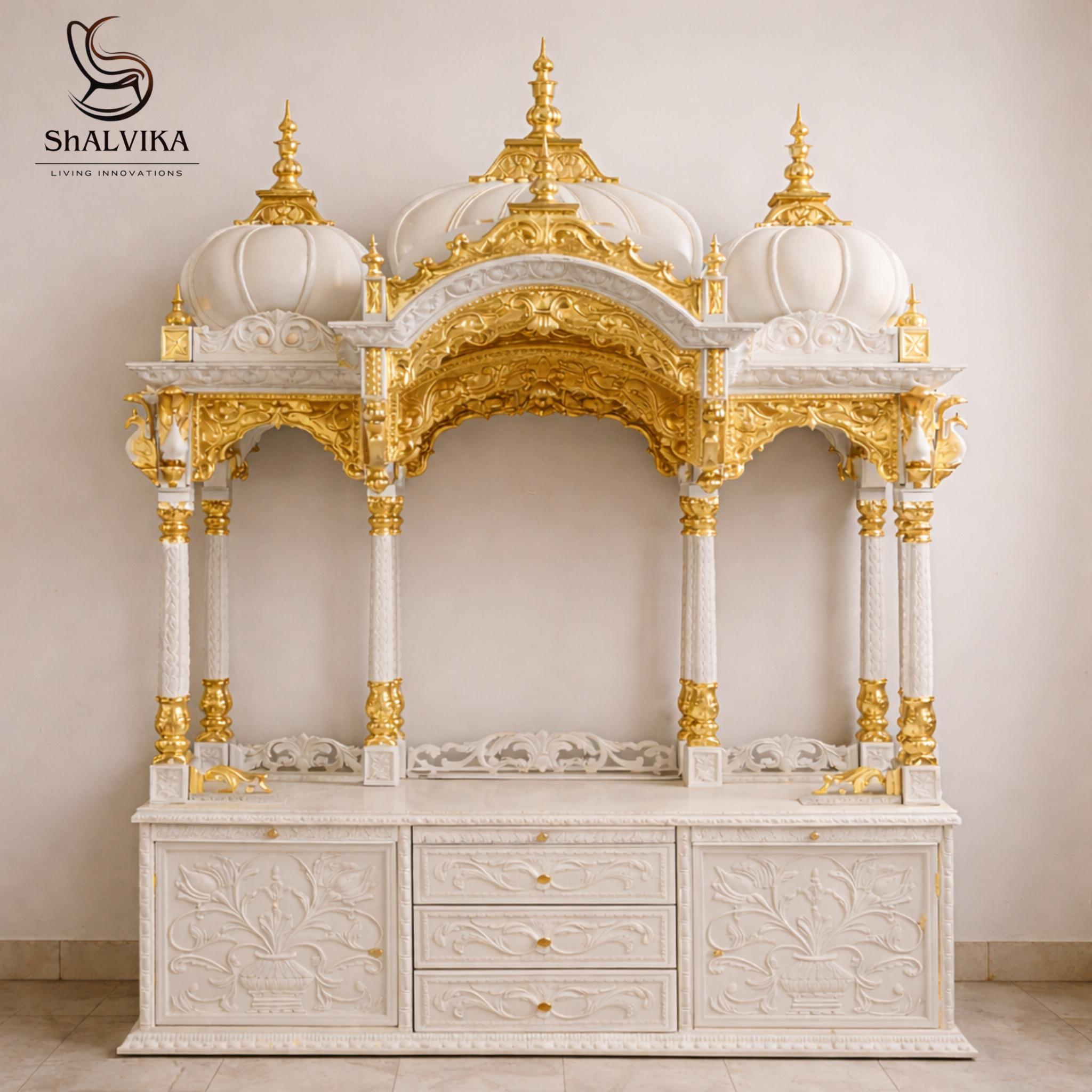 This mandir is designed to fit comfortably in living rooms, bedrooms, hallways, and pooja rooms without occupying excessive space.