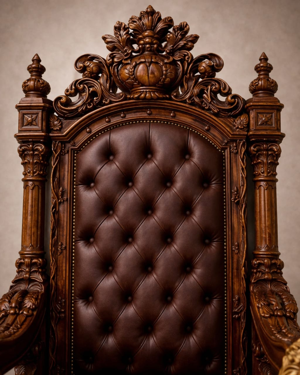 Bring home this handcrafted royal throne and experience unmatched elegance and spiritual grace. If you want true royal craftsmanship, this chair is the ideal choice.