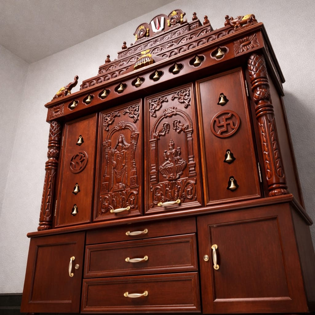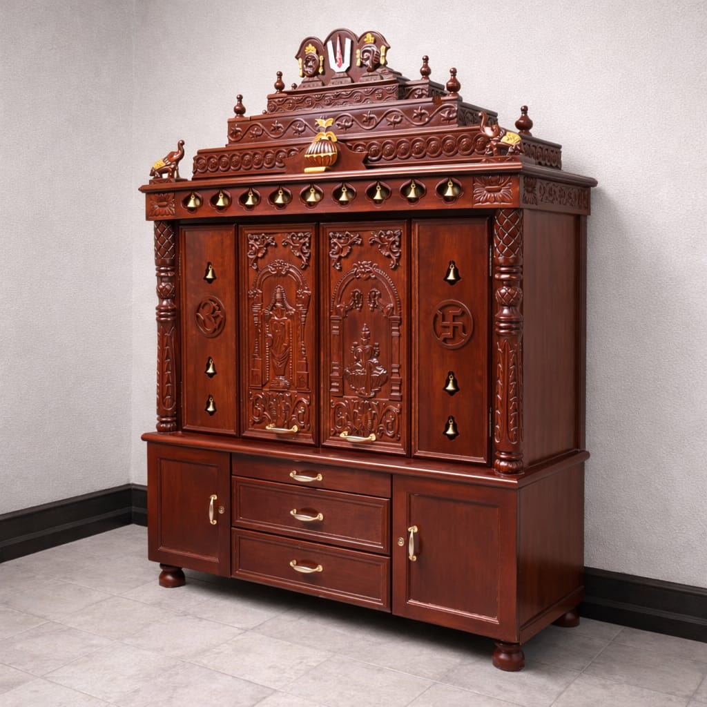Handcrafted Traditional Teak Wood Home Temple with Storage
