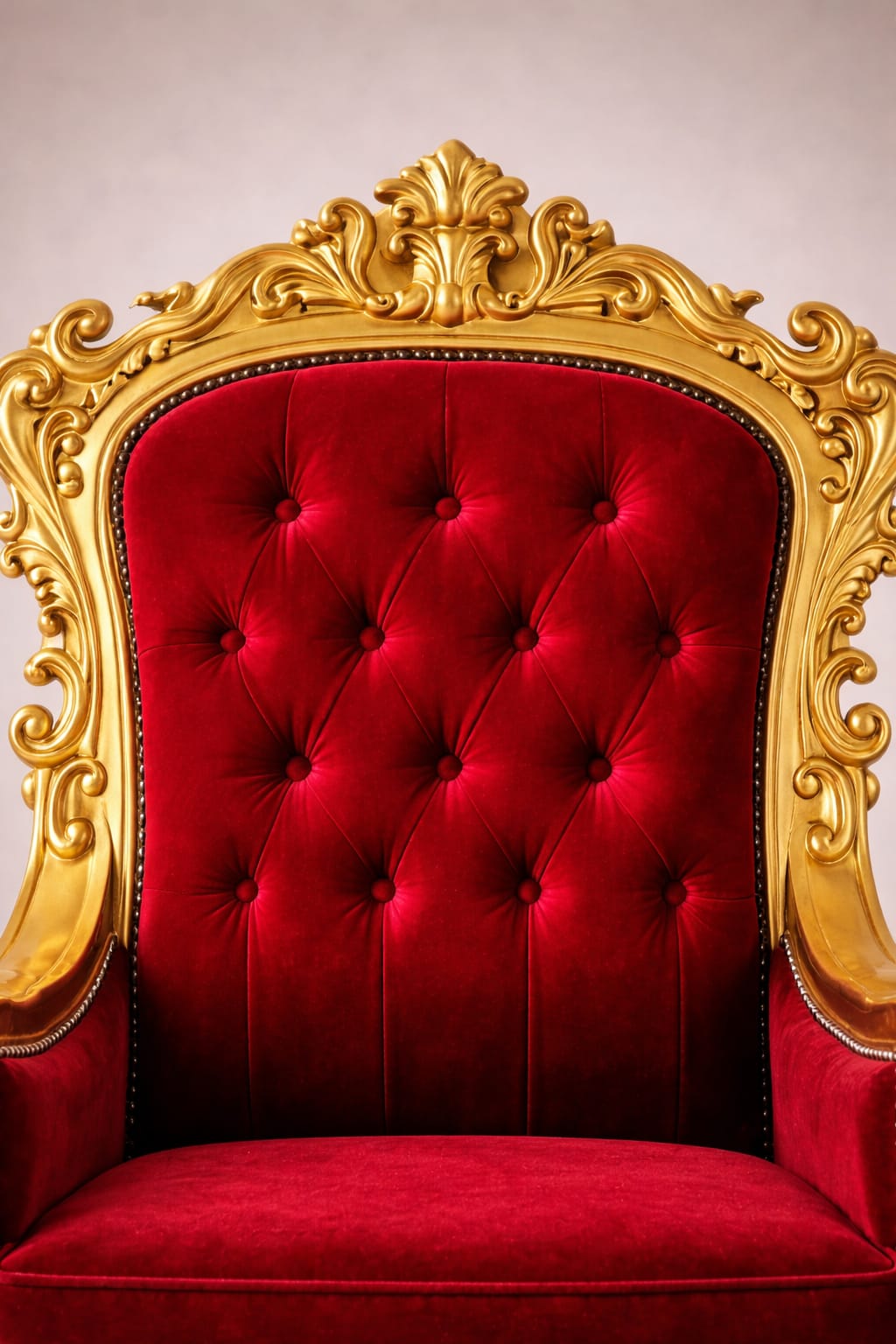 Wooden Handcrafted King Chair in Teak Wood with Gold Deco Paint