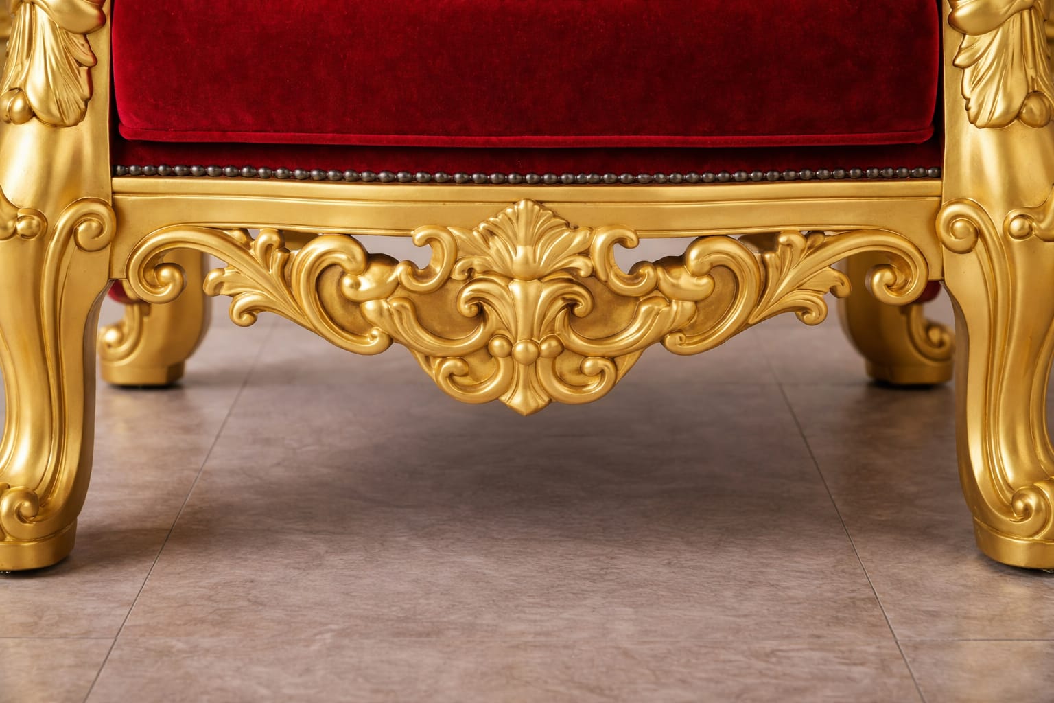 Each Guruji Chair is completely handmade by skilled artisans using traditional woodworking methods. No machines are used in carving or finishing, which allows fine detailing and smooth finishing. The antique gold polish is carefully applied by hand to highlight the carving and give a soft, royal shine.