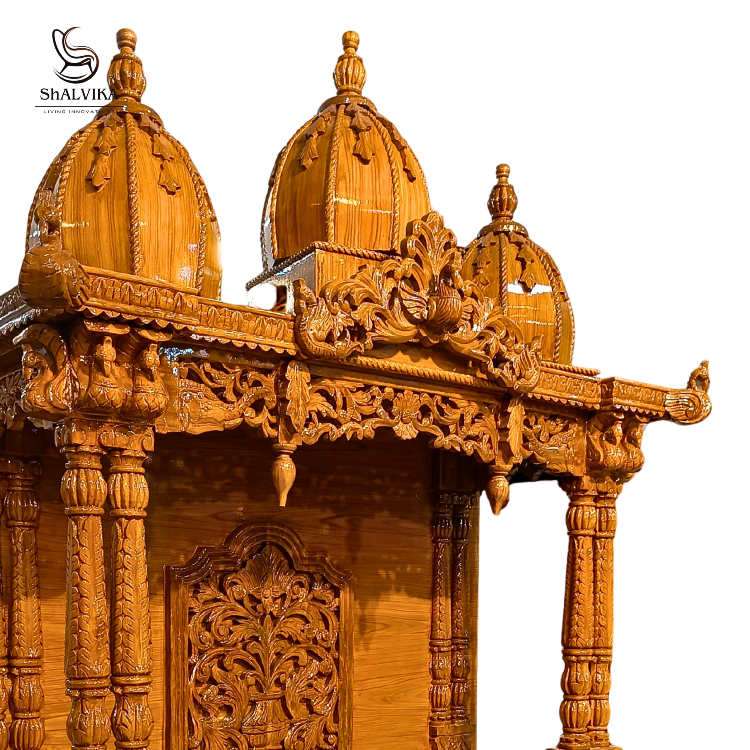 Wooden Puja Mandir in Teak Wood with Luxury Furniture