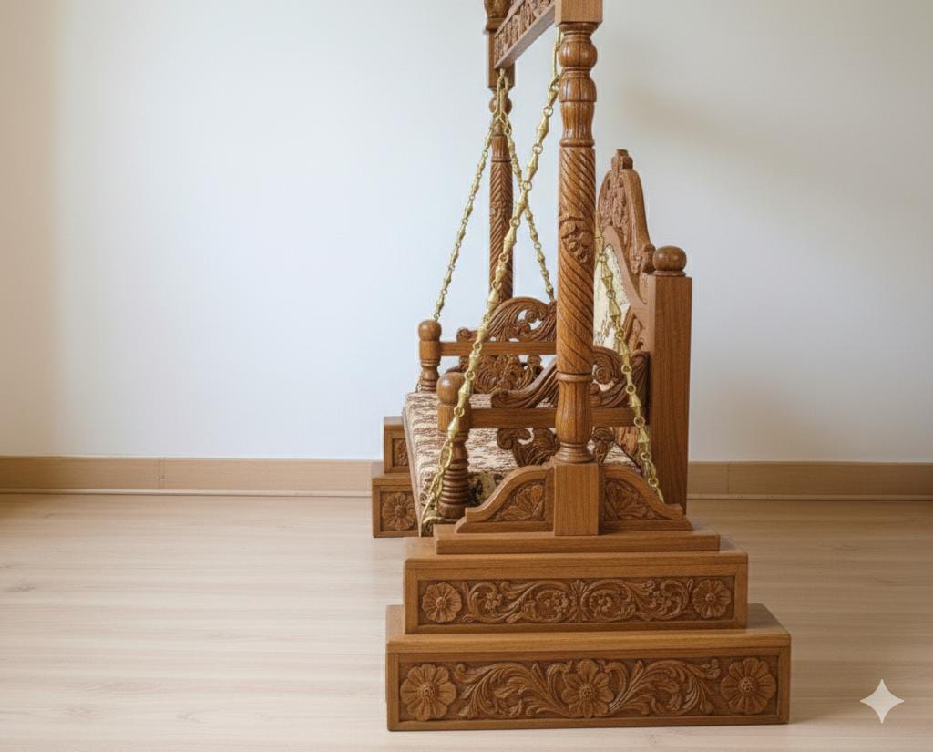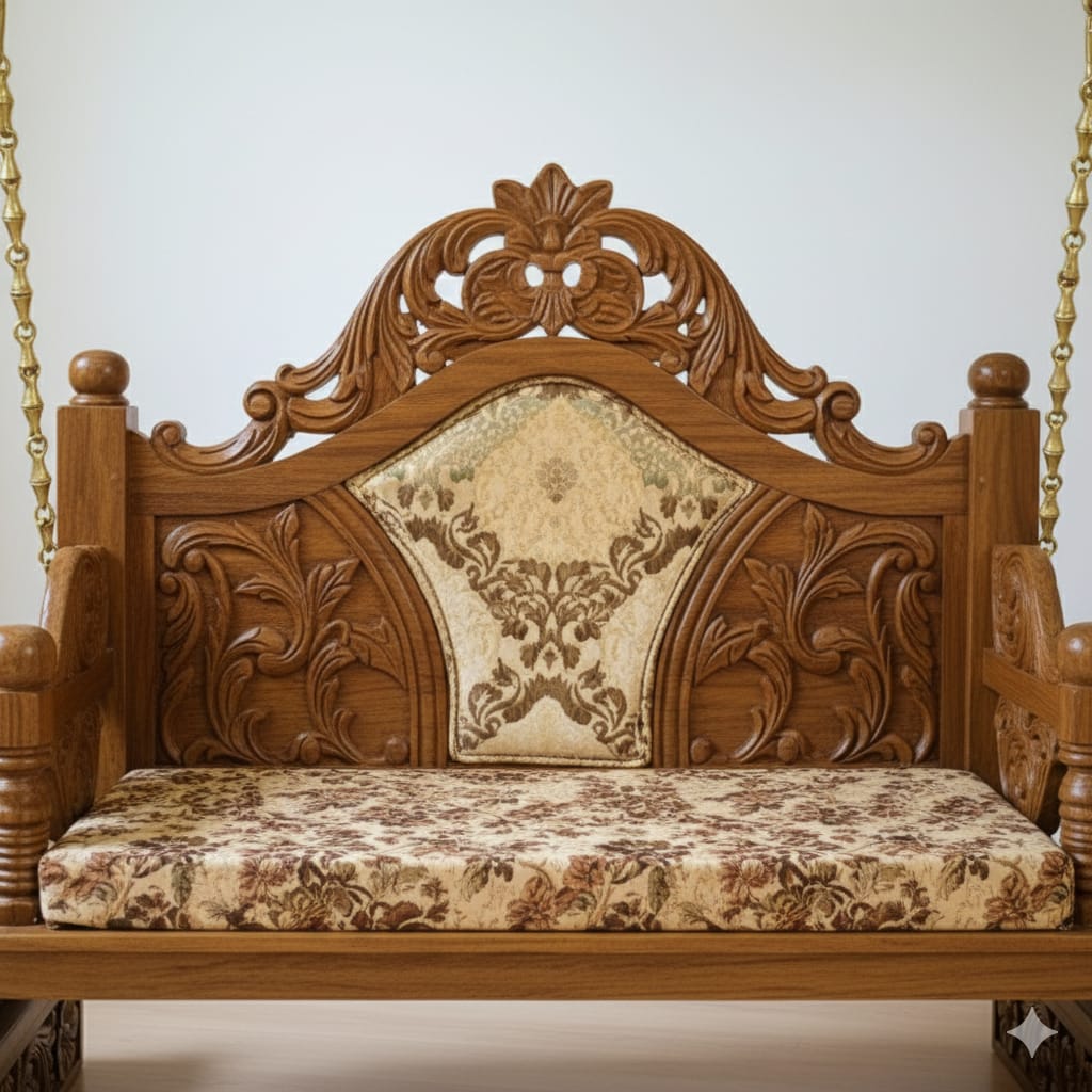 Made from premium solid wood, this jhula features detailed hand carvings, a smooth finish, and an elegant design that reflects true Indian heritage. Its sturdy structure, golden chains, and cushioned seat make it ideal for worship, decoration, or gifting. And the best part – you get all of this direct from the factory, at unbeatable prices without middlemen markup.