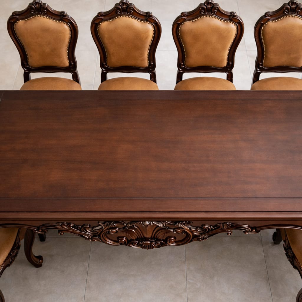 Each dining table is 100% handmade by skilled artisans. We do not use machines for carving or detailing. Every design is carefully crafted by hand, giving your dining table a unique and royal finish. The grand teak wood dining table comes with 10 beautifully designed chairs, offering both comfort and style for large families and gatherings.
