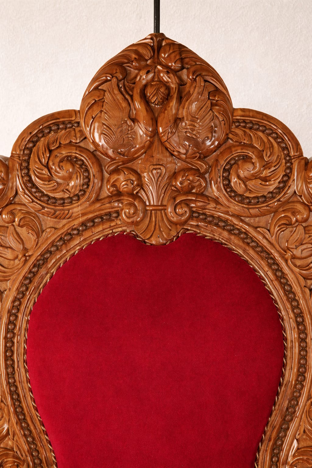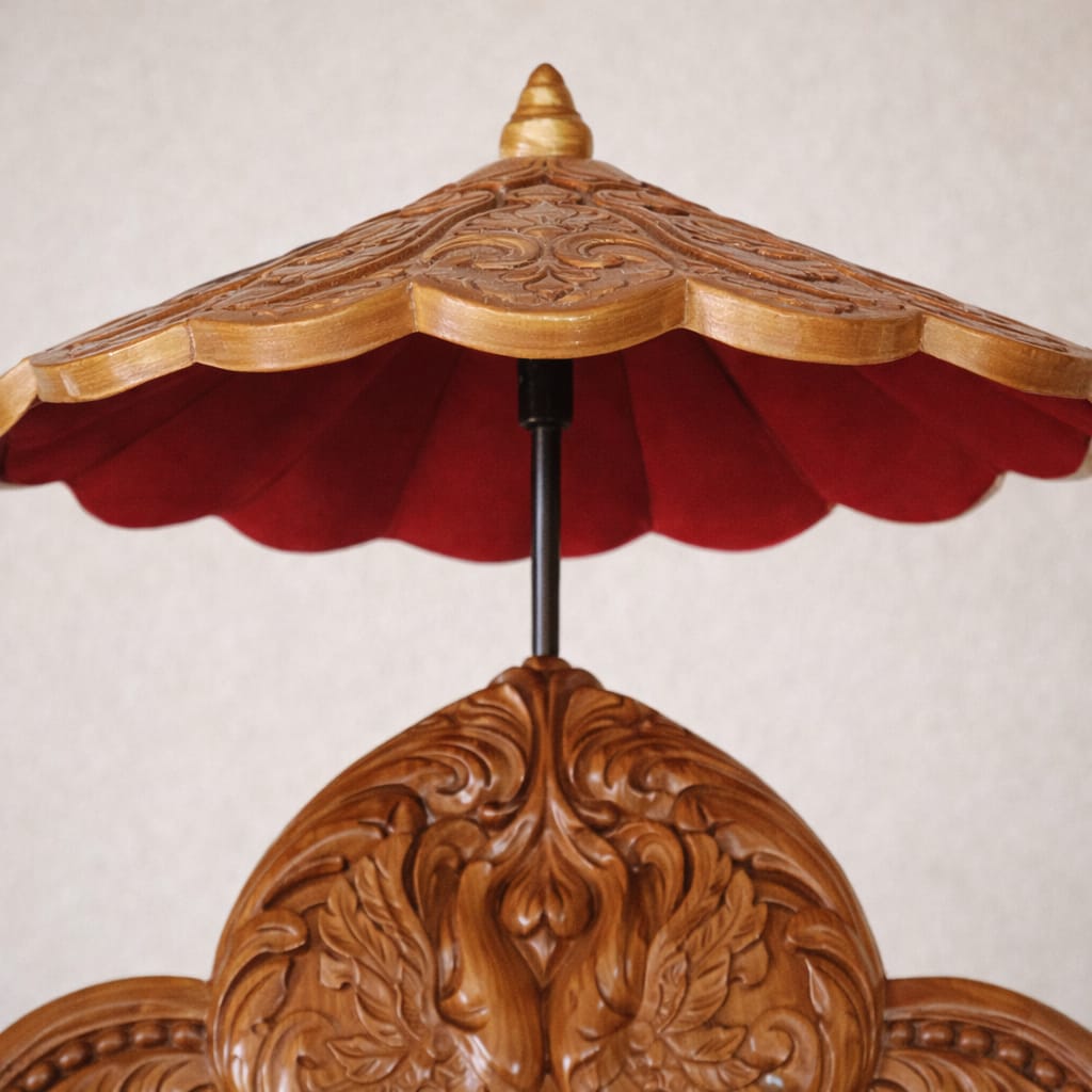 The canopy design adds a royal touch and enhances the overall look of the chair, making it perfect for spiritual gatherings and prayer spaces. Every piece is handmade by skilled artisans, ensuring fine detailing and a rich traditional finish. No machines are used in the making process, which keeps the craftsmanship authentic and unique.
