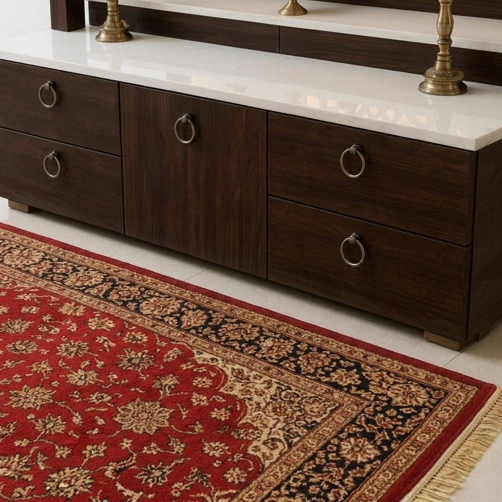 The temple features a high-gloss finish, smooth texture, and a strong build that lasts for years. With spacious drawers and a dedicated idol platform, it gives you both beauty and utility in one design. We also offer customization in size and design, making it suitable for all home spaces.