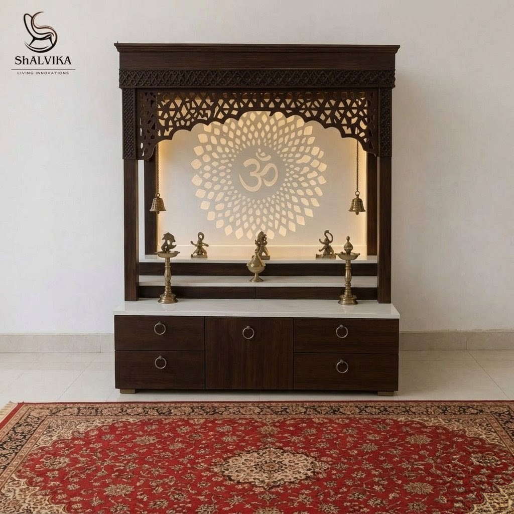 Shalvika Living Innovations presents a handcrafted Modern Temple Design made from premium solid teak wood, perfect for today’s modern interiors. Designed with a clean, elegant, and contemporary look, this temple becomes a peaceful spiritual corner in any home. Every piece is handmade by skilled artisans—no machines, no mass production—only pure craftsmanship.