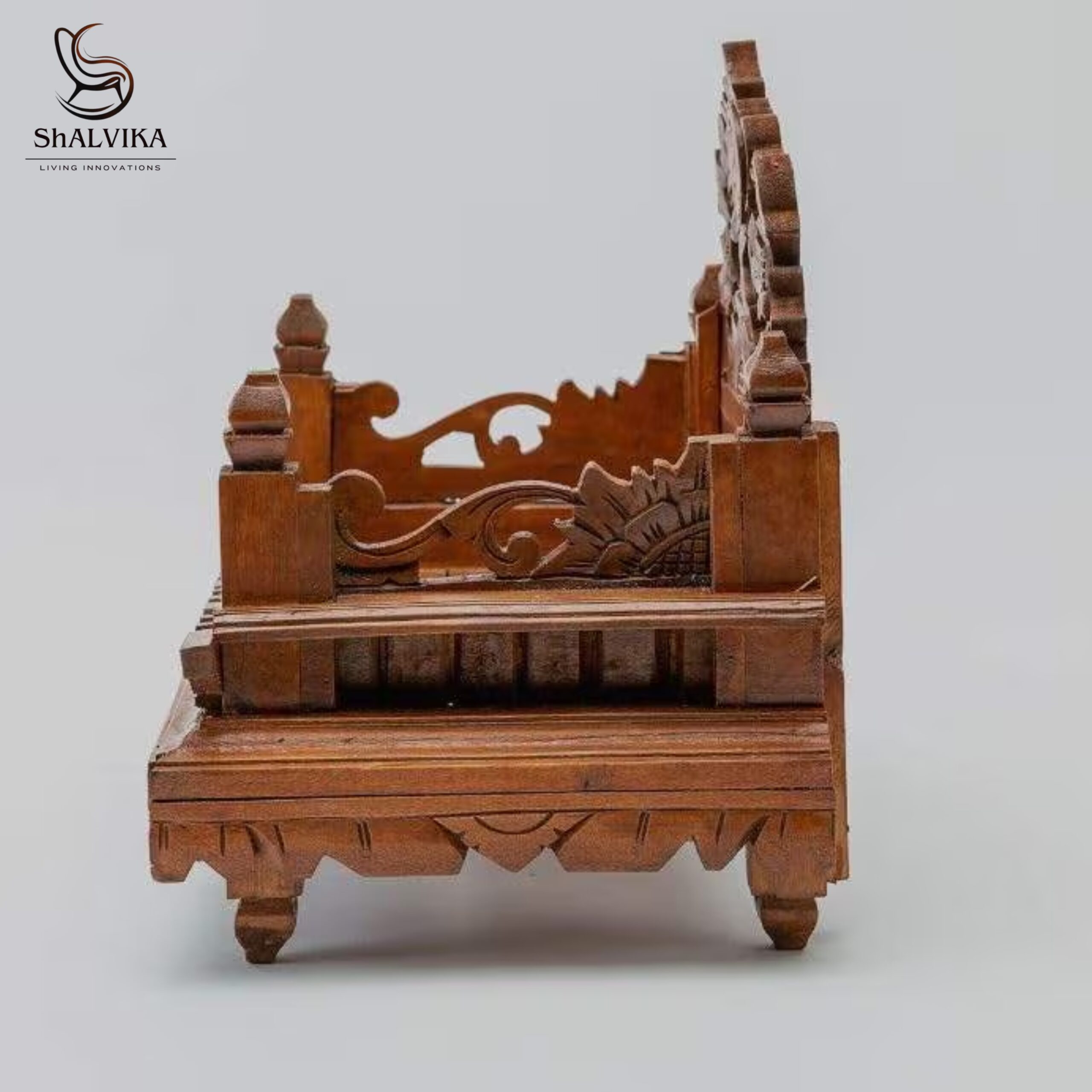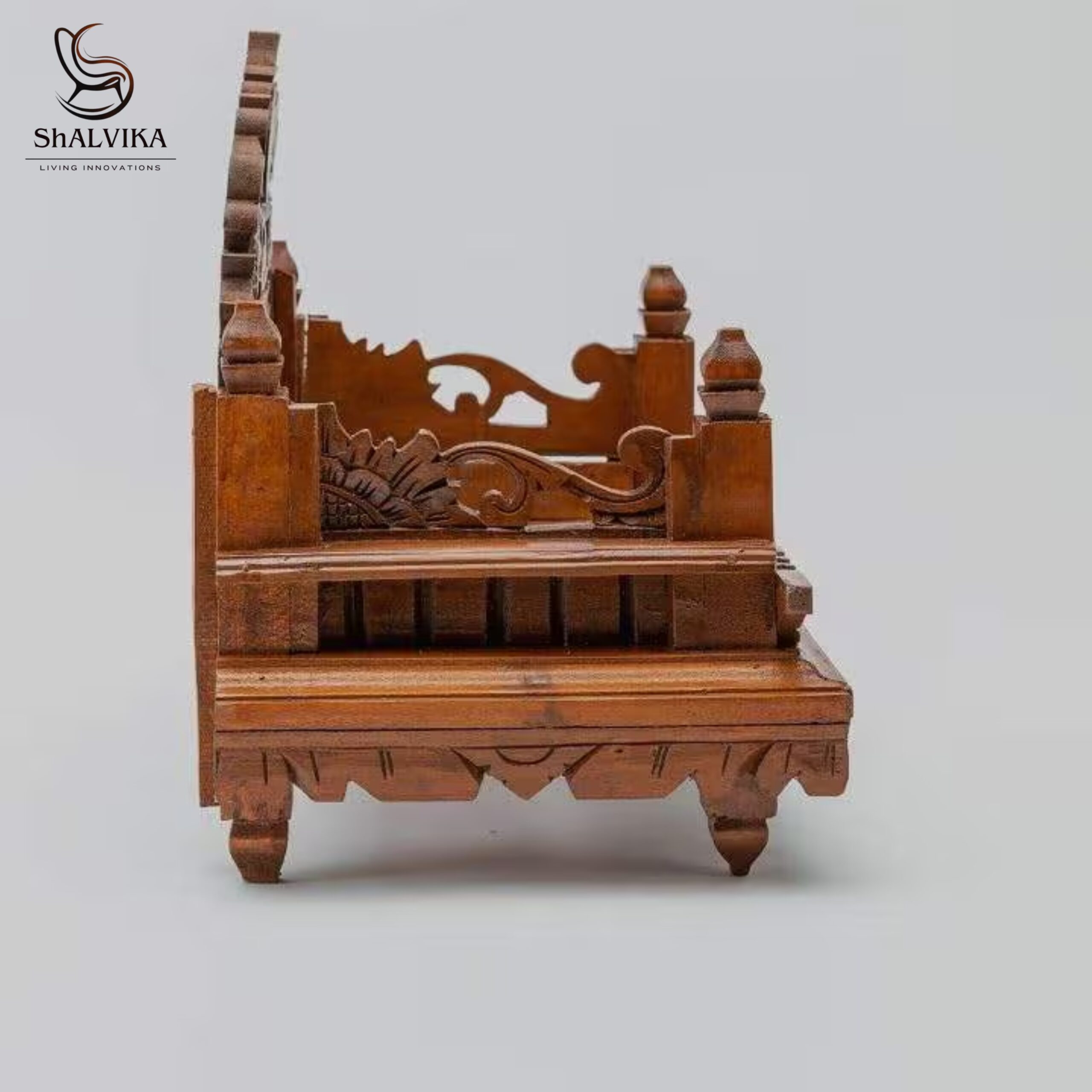 Expertly crafted by skilled Saharanpur artisans, the chowki features detailed floral engravings and elegant wood patterns. The natural polish enhances the warm tone and grain of Sheesham wood, giving it a royal and timeless look. Built to last, this sturdy chowki offers both durability and beauty, providing a sacred platform for your idols and pooja essentials.
