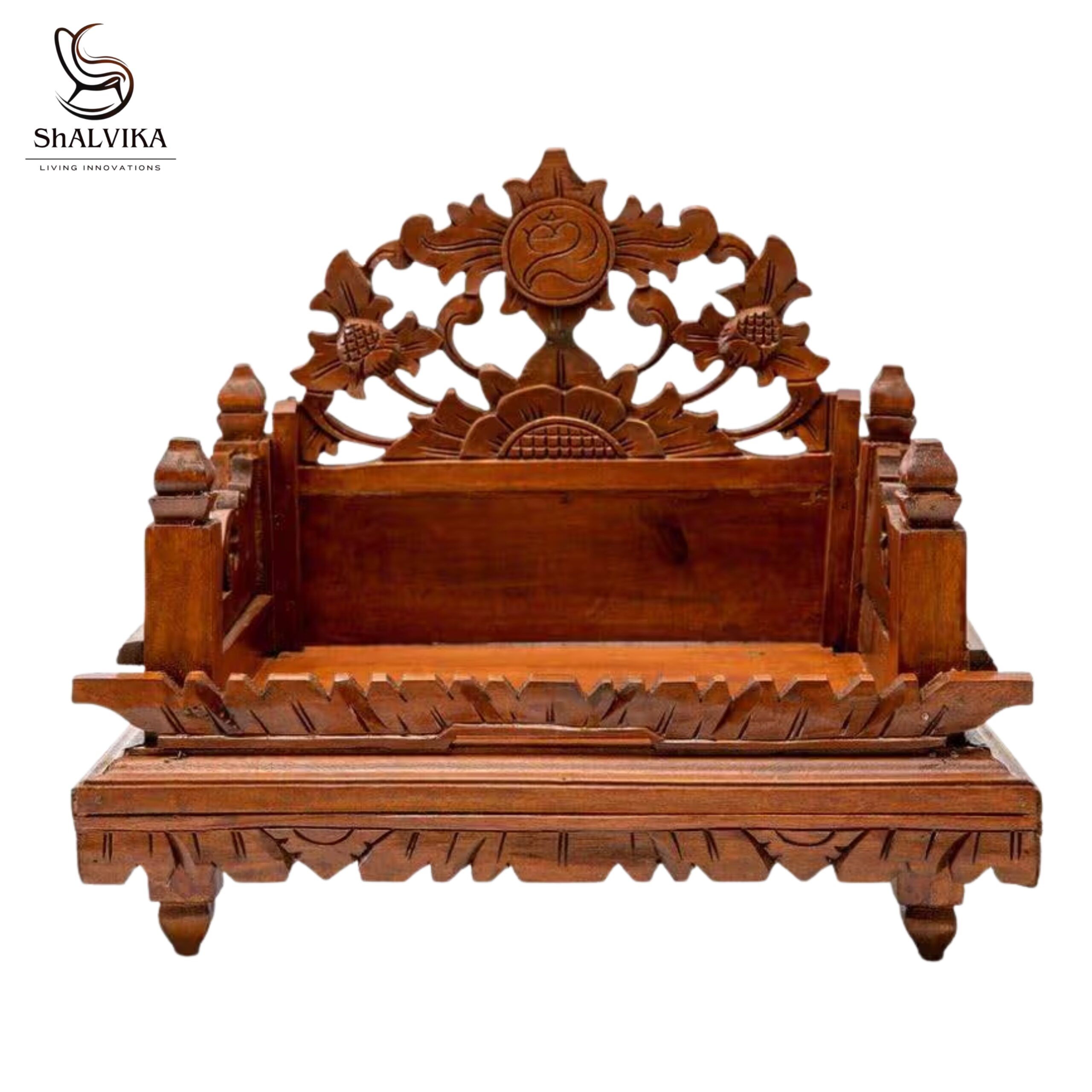 The Wooden Pooja Chowki by Shalvika Living Innovations is a perfect blend of spirituality and traditional craftsmanship. Handcrafted from premium Sheesham wood (Indian Rosewood), this chowki is designed to bring elegance, purity, and devotion into your pooja space. Its intricate hand carvings and sacred “Om” design on the backrest symbolize peace and divine energy, making it an ideal addition to any home temple.