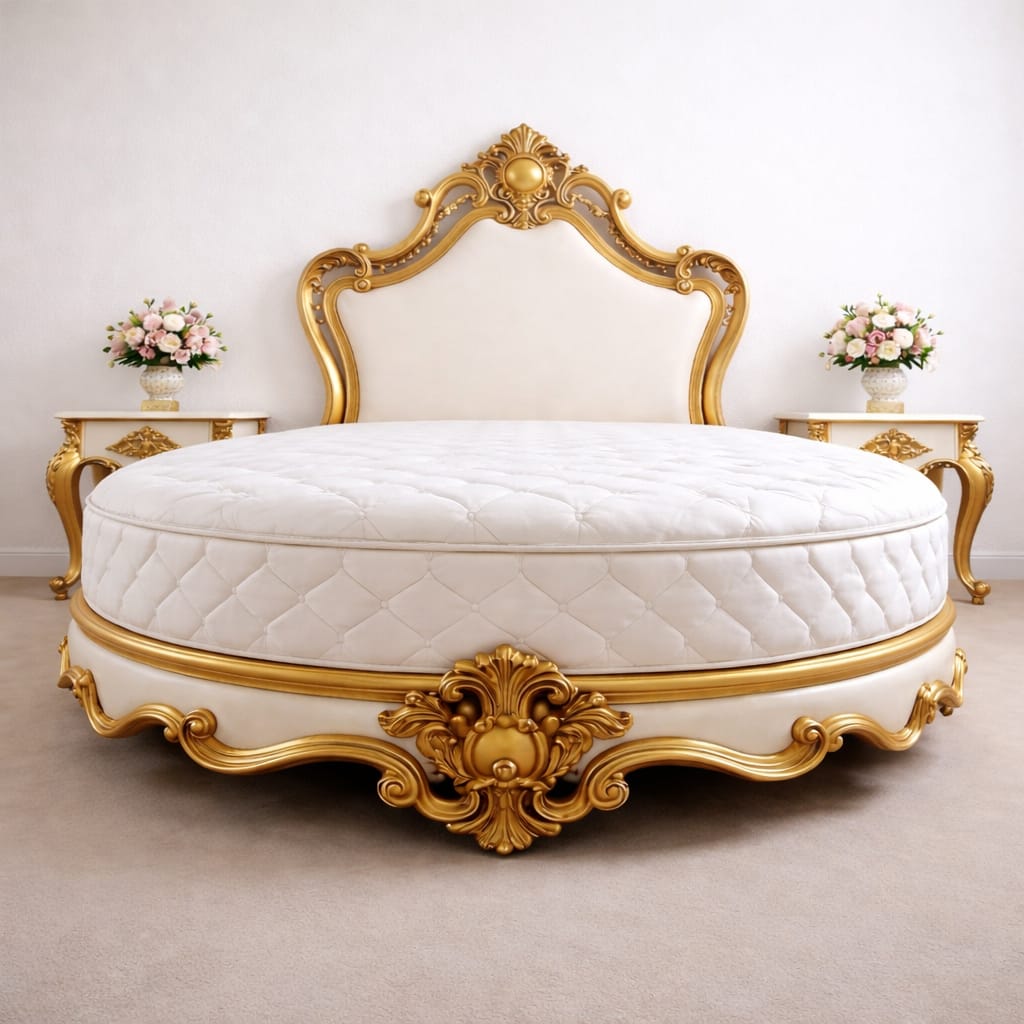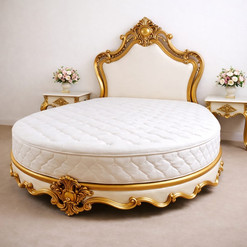 This wooden round bed comes with two beautifully carved side tables that perfectly match the design. The side tables add both style and convenience, completing the luxurious look of your bedroom.