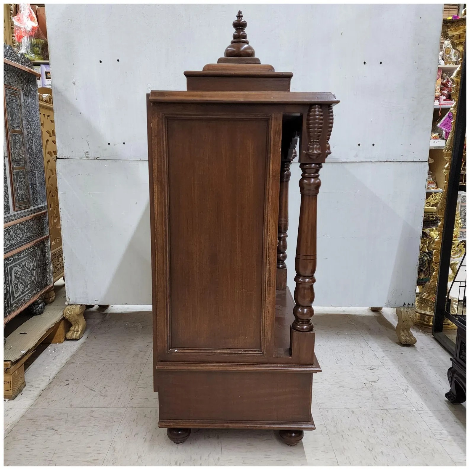 Handcrafted Traditional Teak Wood Home Temple With Storage