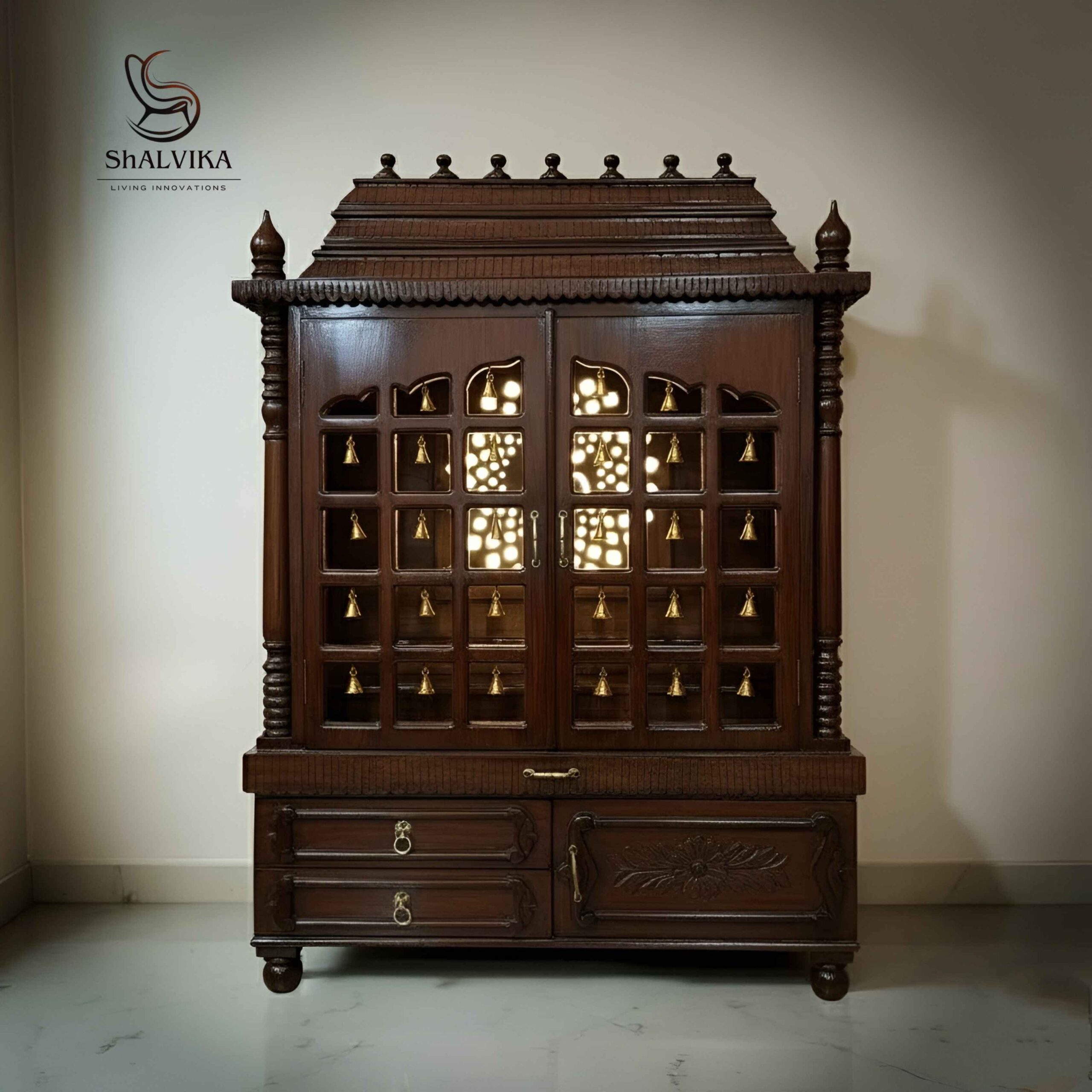 Teak Wood Mandir with Bells Door – By Shalvika Living
