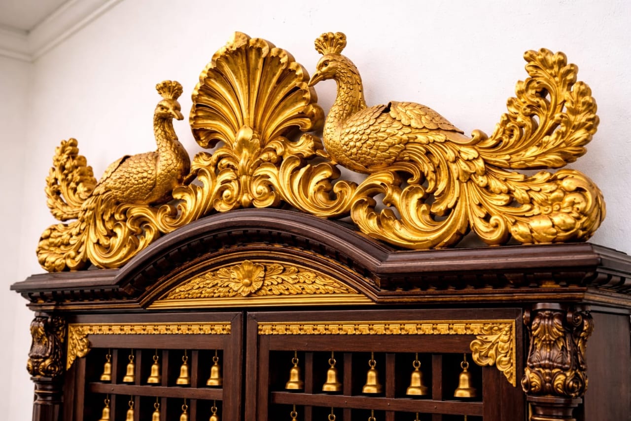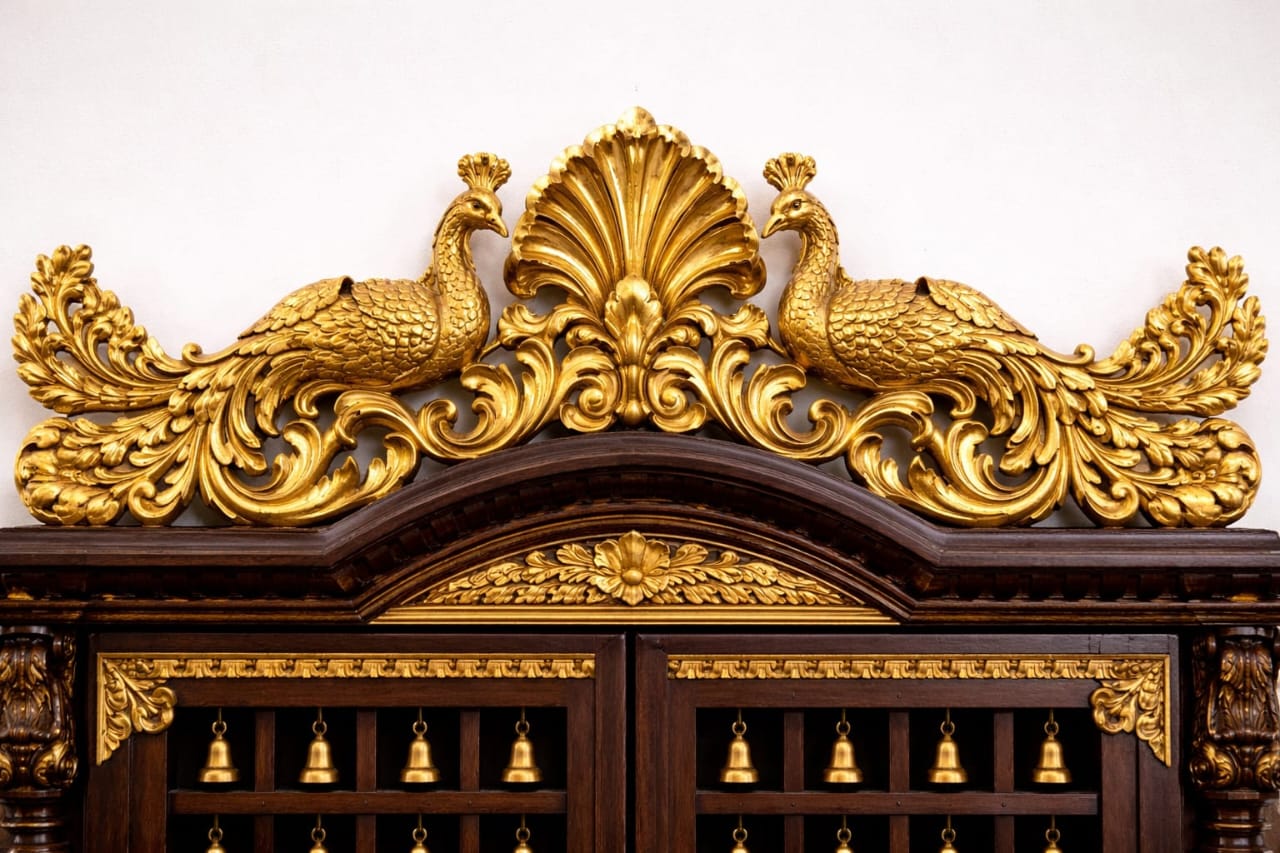 Teak Wood Pooja Mandir in Peacock Design