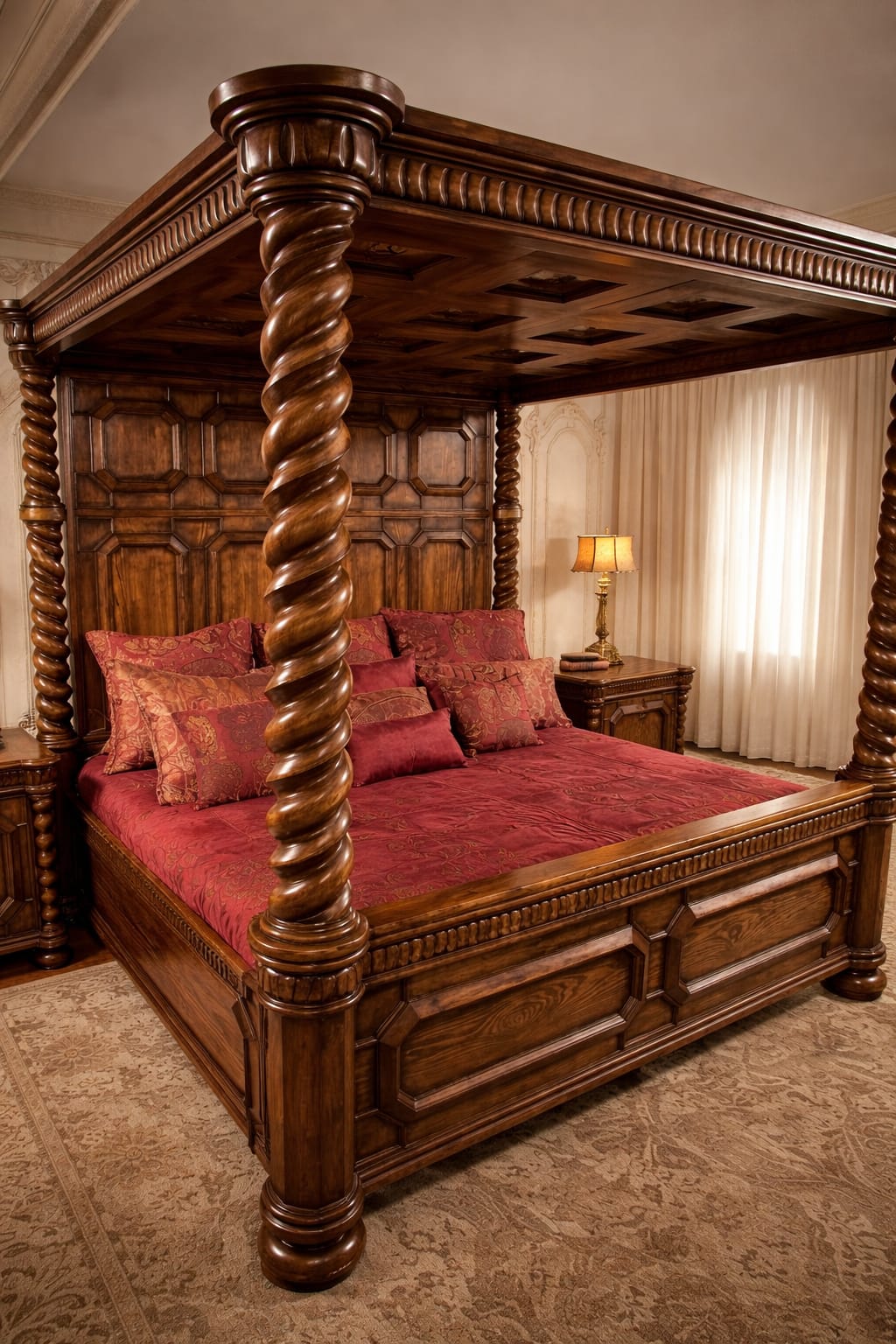The natural grains of teak wood add richness, while its long-lasting durability ensures that your bed remains strong and stunning for many years. Every piece is handcrafted without machines, making your poster bed a unique work of art with its own identity and charm. Whether your interior style is traditional or contemporary, this bed blends effortlessly to enhance the overall décor.