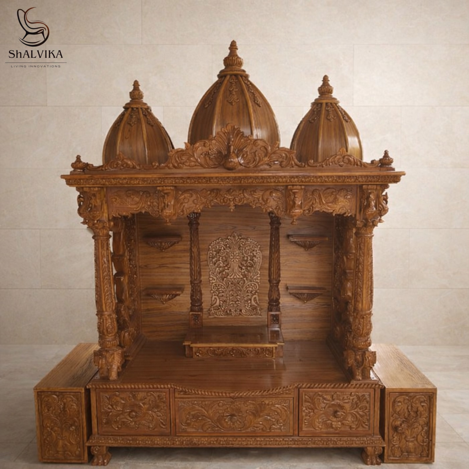 Wooden Big Size Mandir For Home Designs | Shalvika Living Innovations