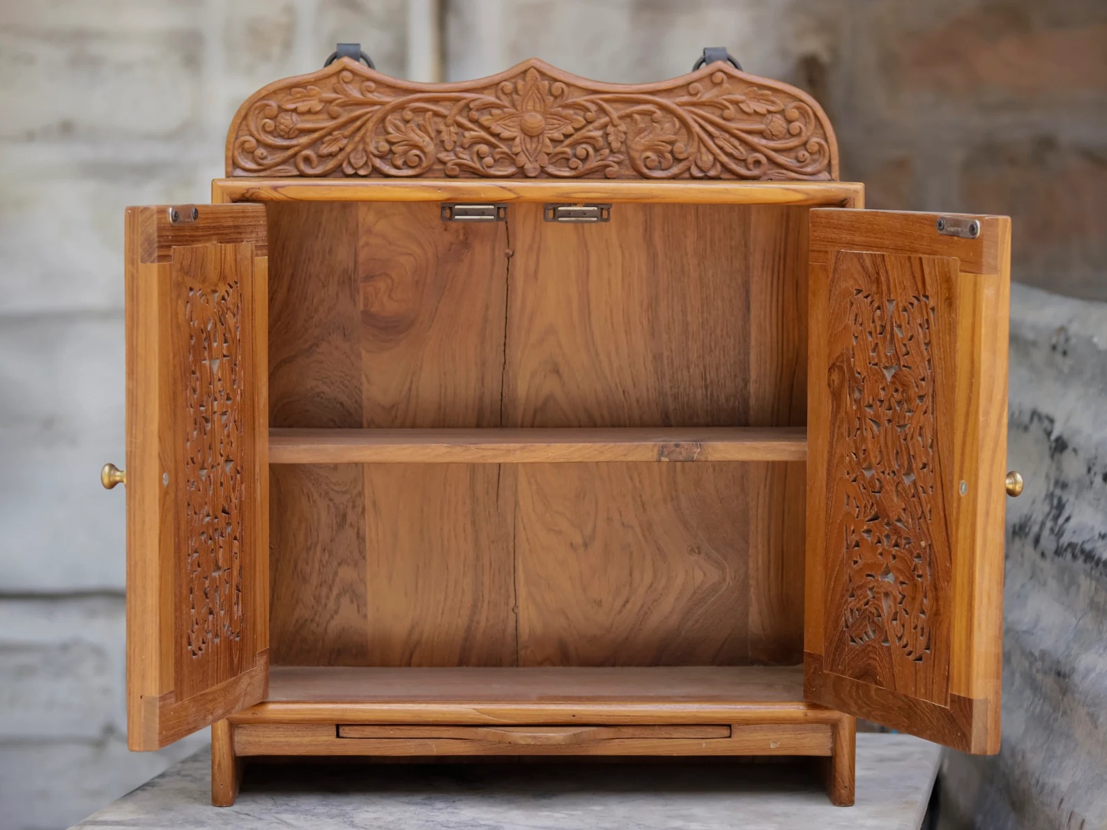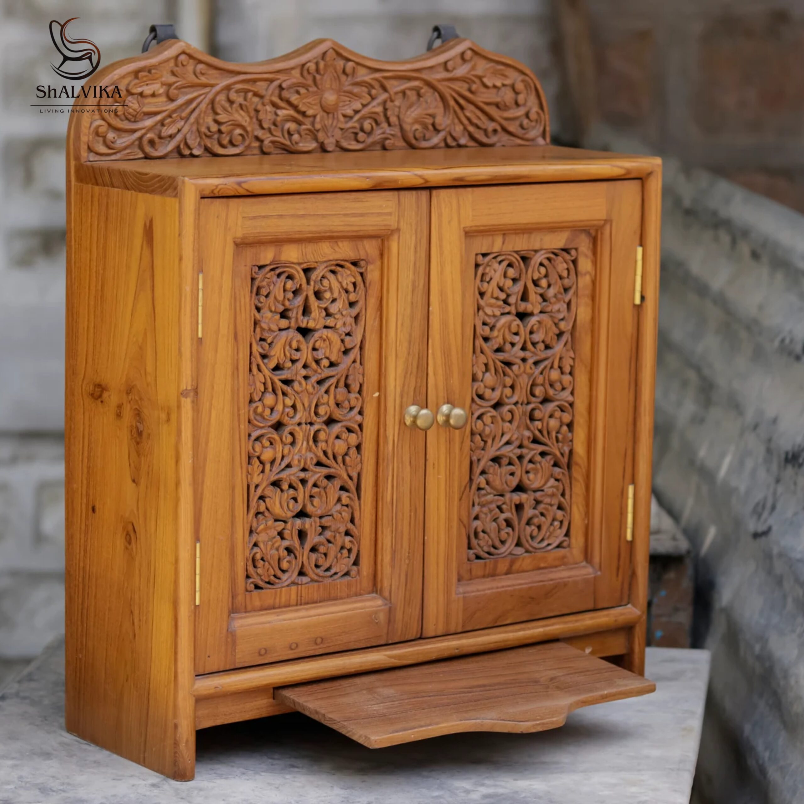 Handcrafted Traditional Teak Wood Home Temple With Storage