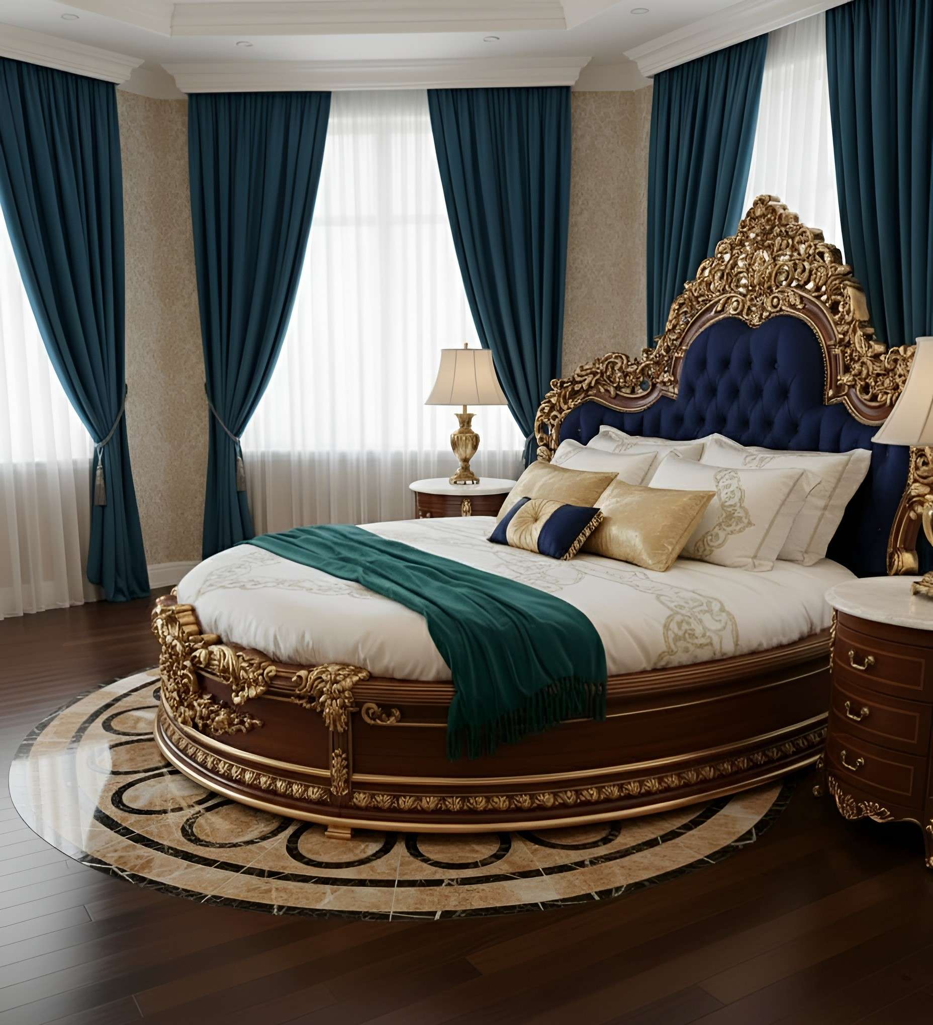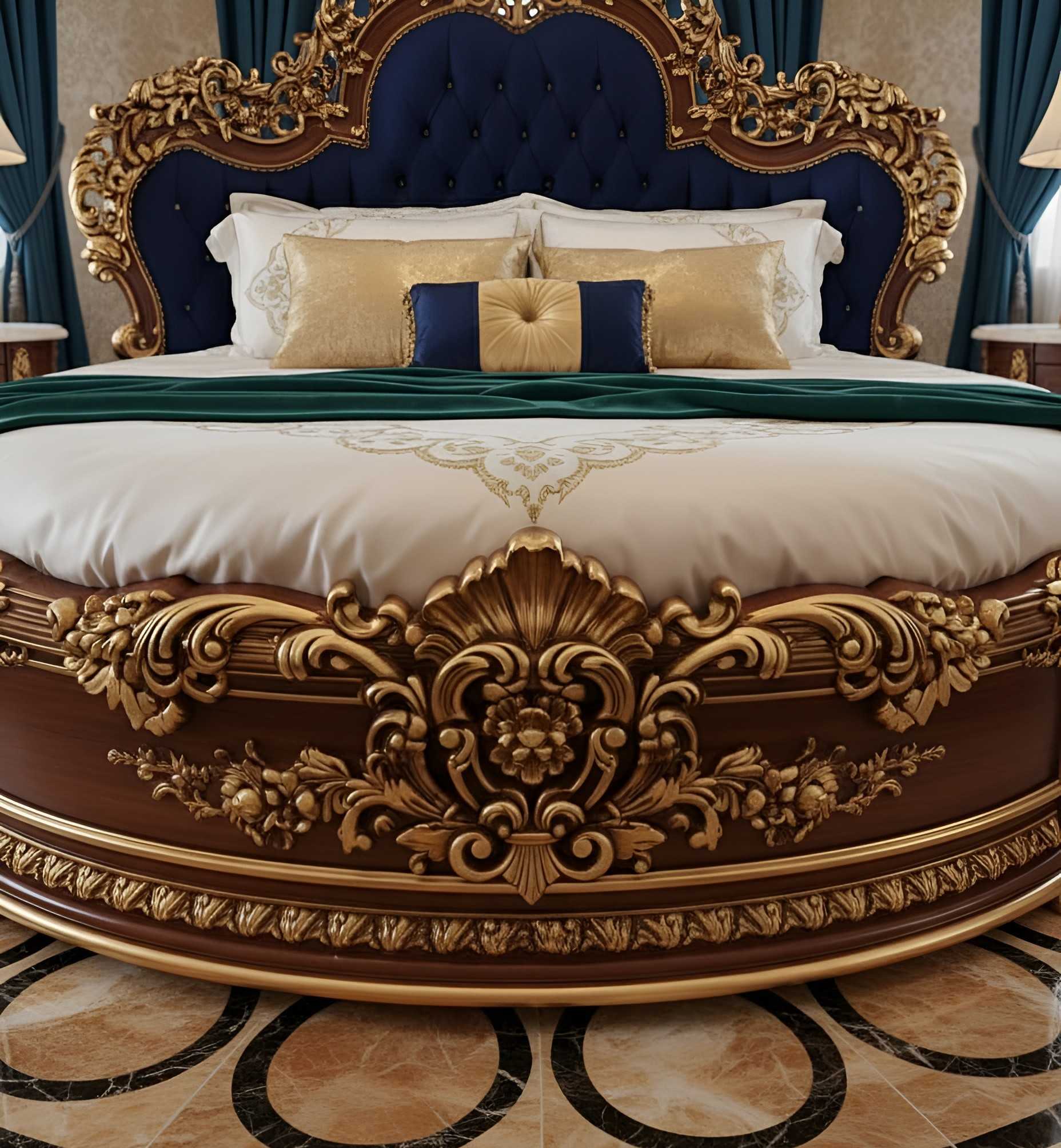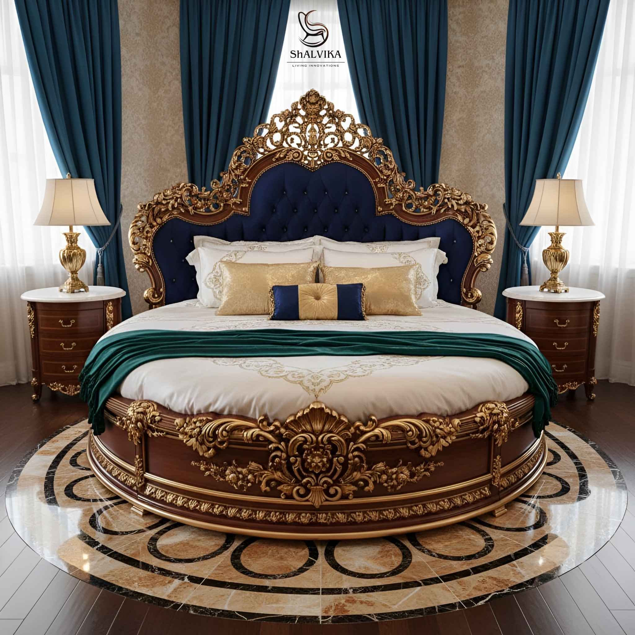 Perfect for master bedrooms, villas, designer interiors, or premium suites, this Luxury Round Bed reflects a blend of traditional craftsmanship and modern elegance. Customization options are available in polish, fabric, size, and finish to match your personal decor style.