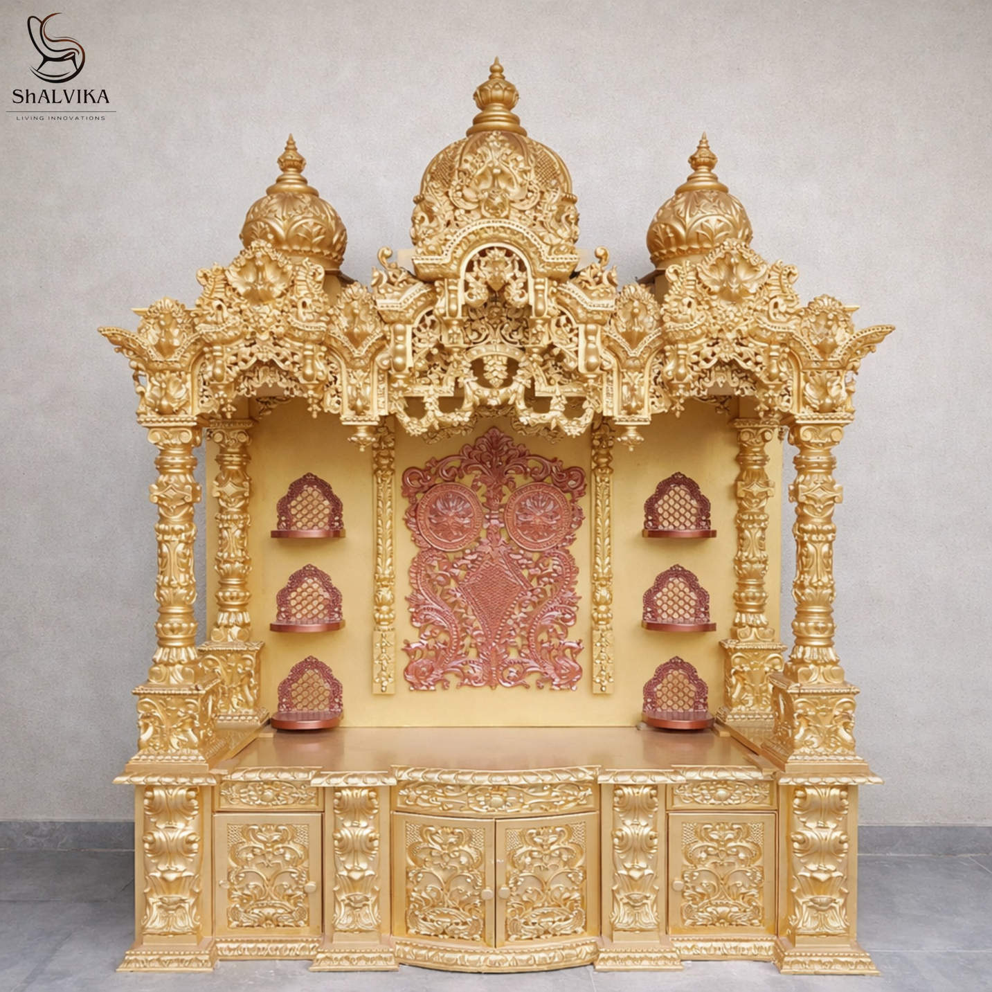At Shalvika Living Innovations, every mandir is customizable in size, color, carvings, and layout to suit your home and traditions.