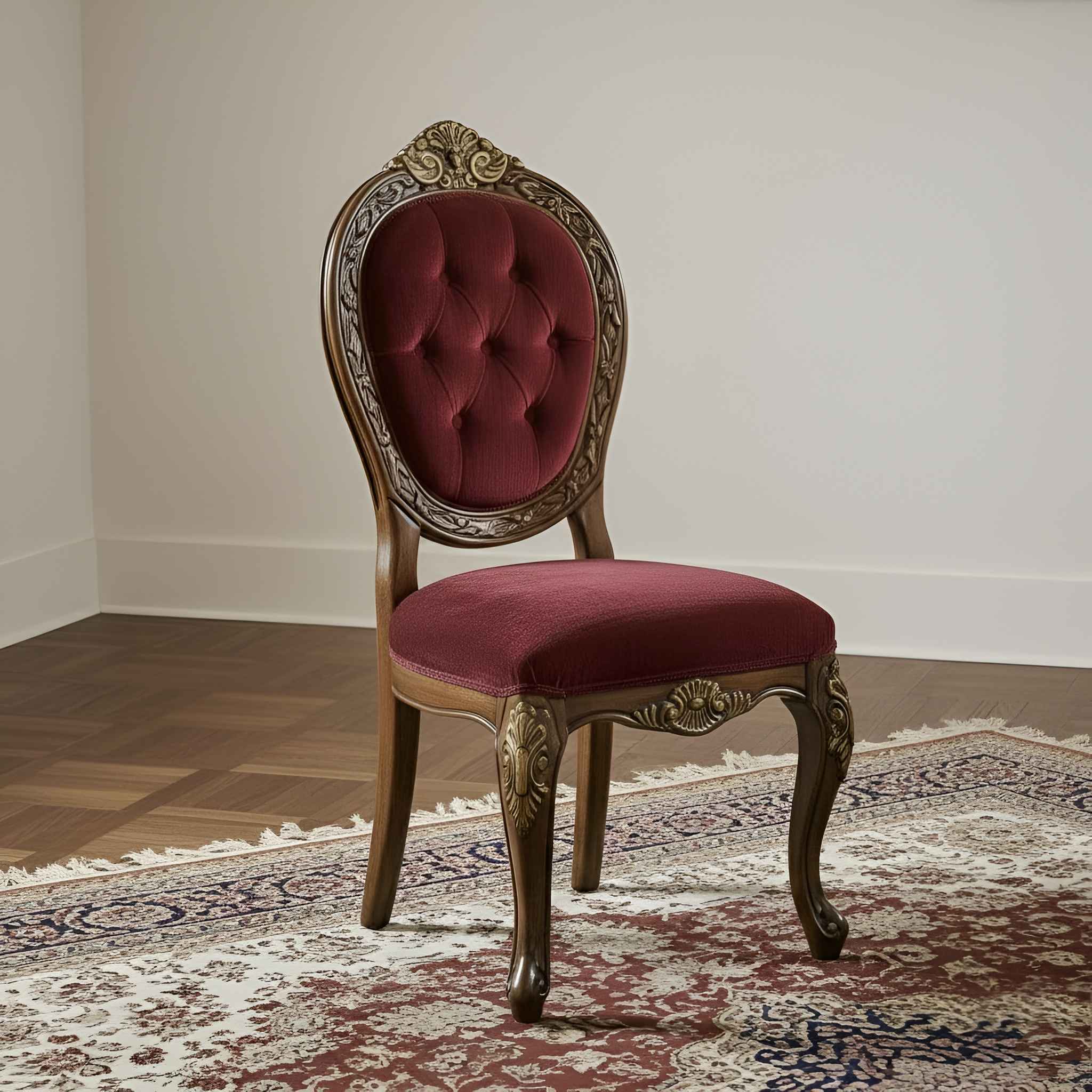 - Comfortable velvet-upholstered chairs with tufted backrest