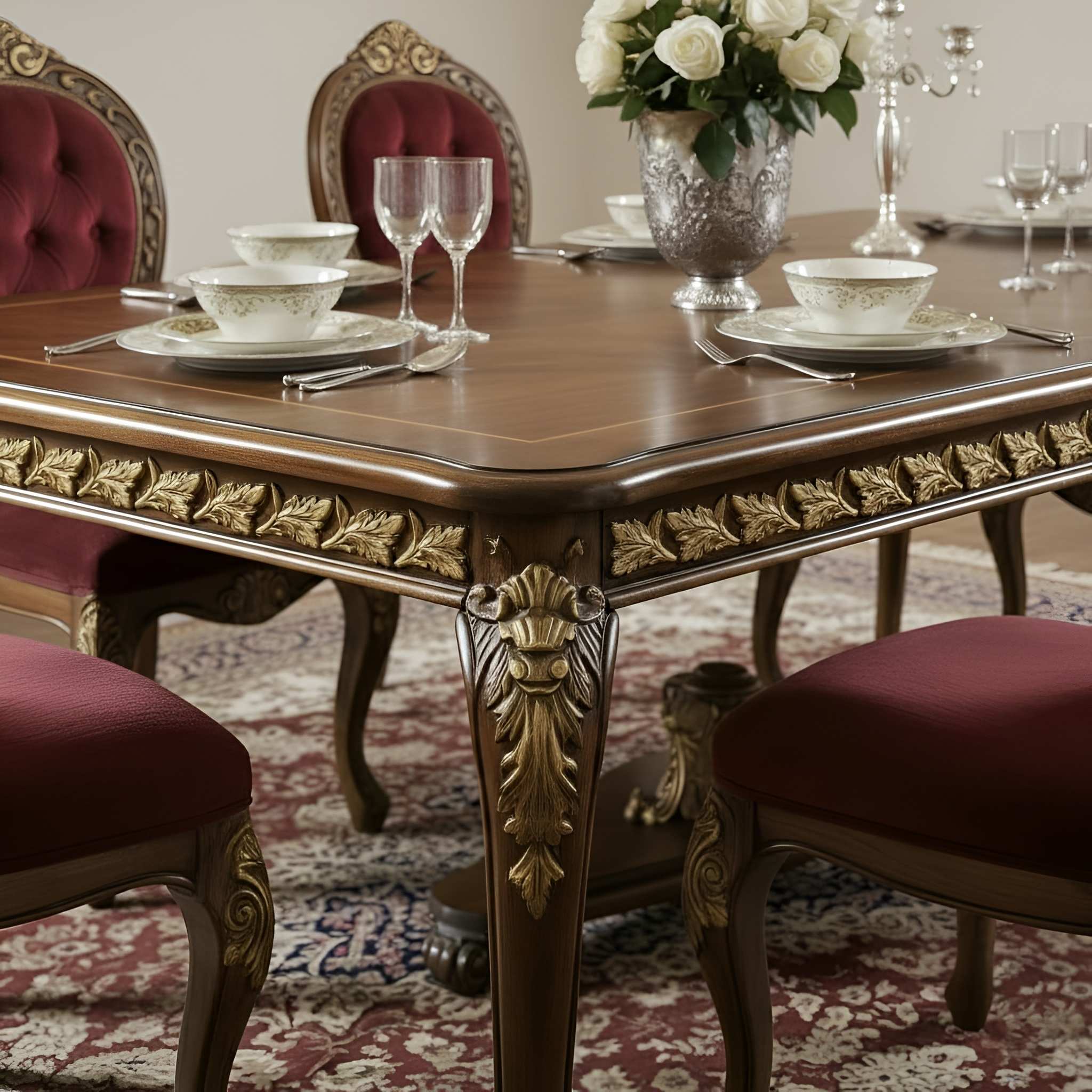Wooden Royal style dining table set