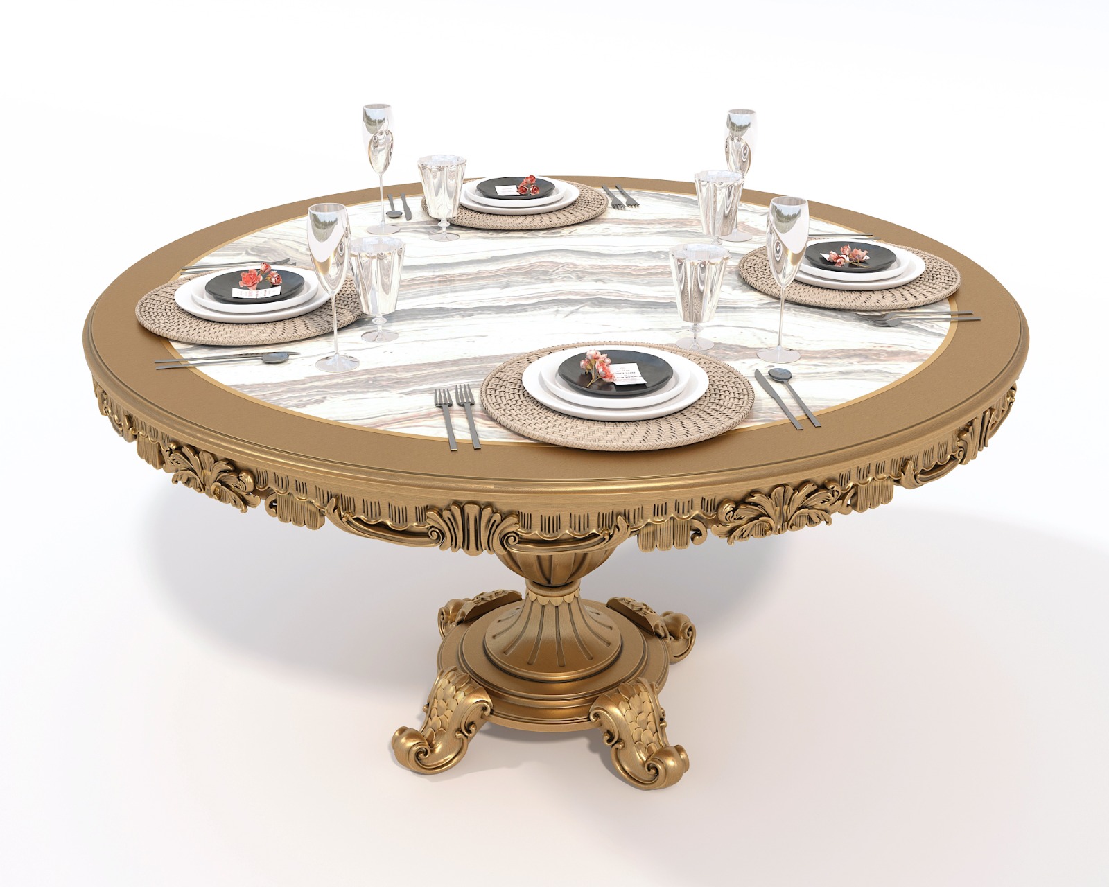Wooden Handcrafted Designer Luxury Dining Table Set