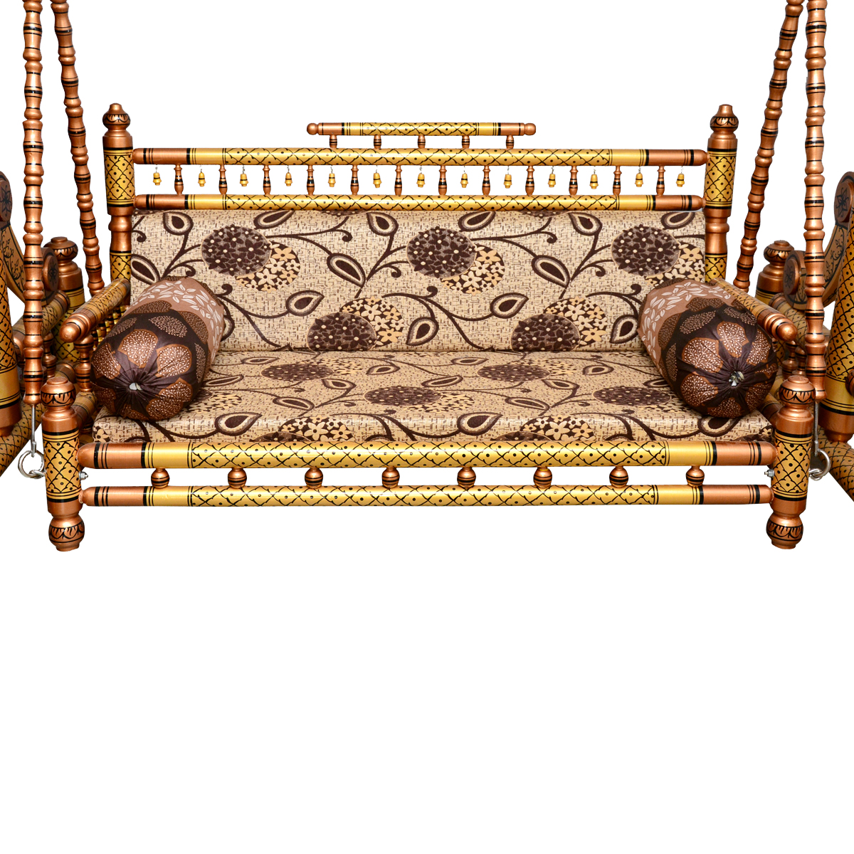 Large Wooden Carved Designer Swing (Jhoola) with Brass Chain