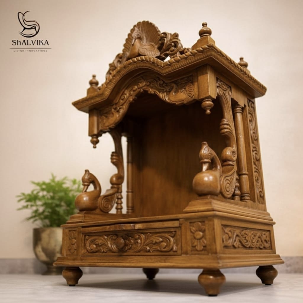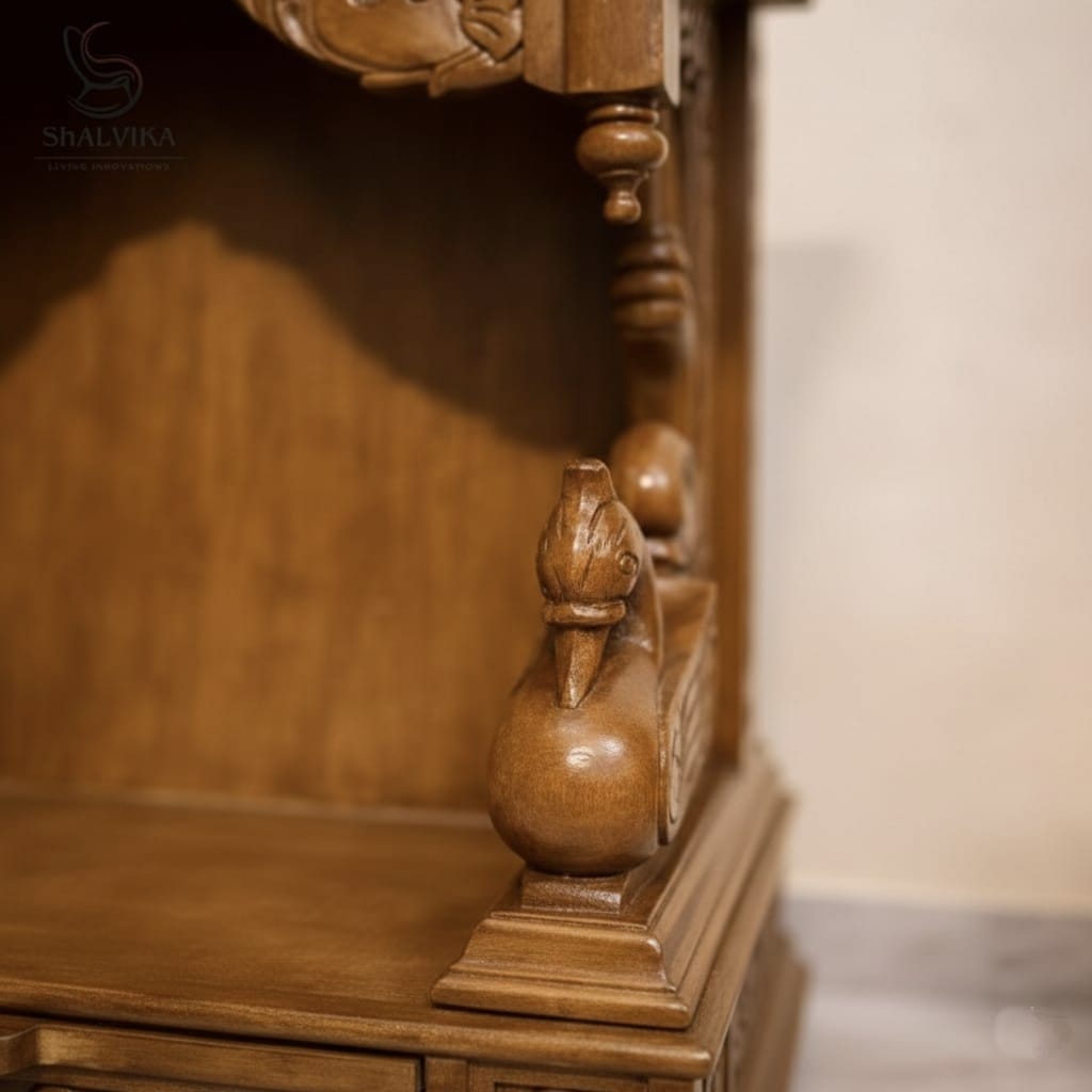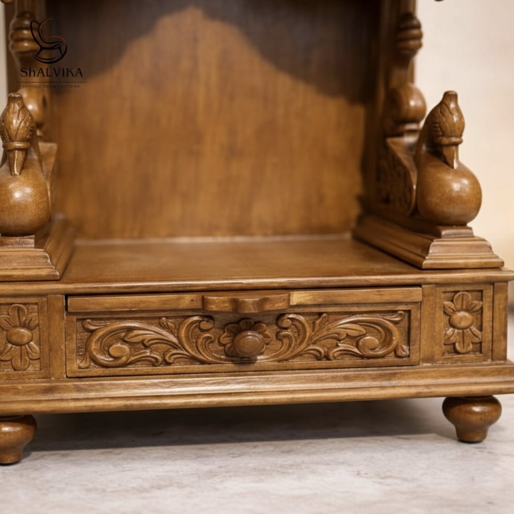Handcrafted Traditional Teak Wood Home Temple with Storage