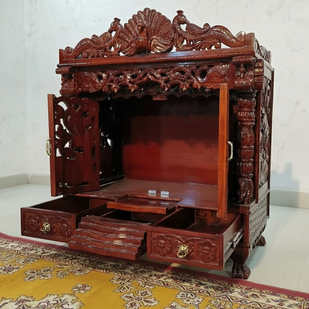 Handcrafted Traditional Teak Wood Home Temple with Storage